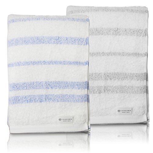 TANGONO バスタオル 2枚組 ブルー×グレー 約61×120cm 驚きの柔らかさ なめらかな触り心地 速乾 吸水